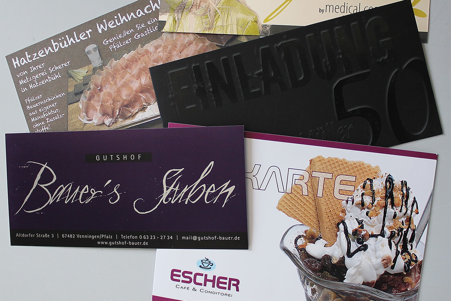 Um aber für unsere Kunden höchste Qualität und uneingeschränkte Termintreue zu garantieren, lassen wir grundsätzlich nur im Inland drucken. Wir verzichten ganz bewusst auf den preislichen Vorteil, um Verlässlichkeit in jeder Hinsicht bieten zu können. Die Ergebnisse aller unter dem Stichwort Gestaltung aufgeführten Leistungen werden fast ausschließlich bei unserer großen und renommierten Partner-Druckerei in Deutschland realisiert!